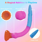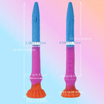 The design of the long toy is amazing. It has a smooth snake skin shape on one side, a tentacle-like shape on the other side, and small bumps so that you will feel the pleasure of being rubbed by the bumps on the surface. The scaled texture feels like something going DEEP inside your body and provides ever so slight friction coming out. The bulge at the bottom is wider.